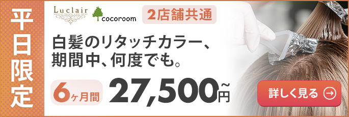 期間中、リタッチカラーが何回も好きなだけご利用できる、お得な平日限定メニューです。