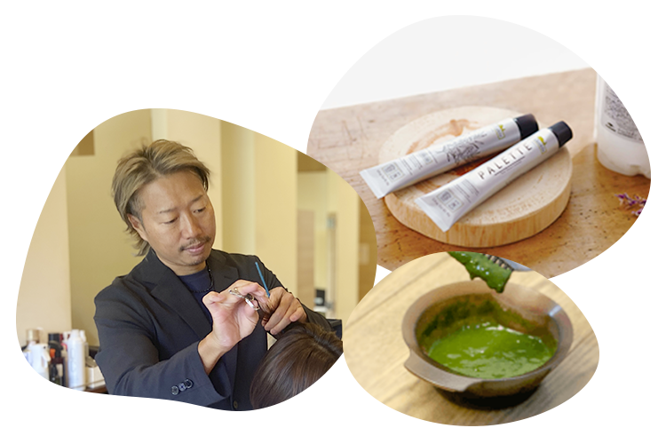 カラーやパーマで使用する商材は、“天然由来”にこだわっています。